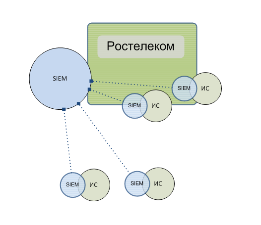 Таким образом, мы получили иерархическую систему управления событиями ИБ на основе SIEM, как основу ПРОКОМАТ. Все первичные данные обрабатываются на нижнем уровне системы, в систему верхнего уровня поступают сигналы о явных аномалиях и атаках. Такое взаимодействие позволяет выполнить пункт 2б (обеспечение взаимодействия владельцев информационных ресурсов Российской Федерации, операторов связи, иных субъектов…). Для выполнения пункта 2а (прогнозирование ситуации в области обеспечения информационной безопасности Российской Федерации), возможно, потребуется реализация систем, подобных системам технического анализа на рынке ценных бумаг.