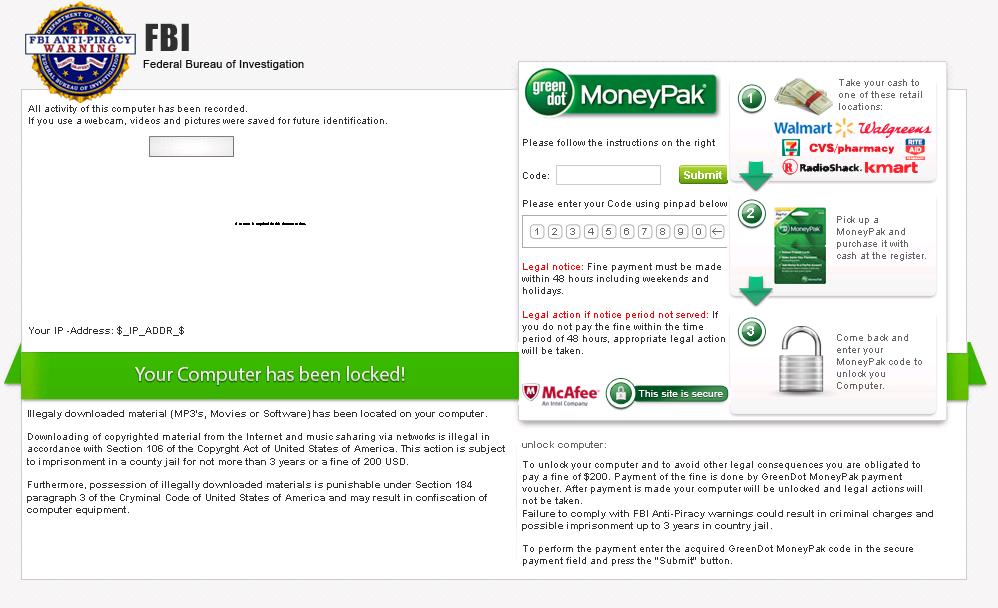 После этого Weelsof приступает к основной части своей программы: блокирует доступ к рабочему столу и выводит во весь экран локализованную страницу с поддельным сообщением от местных блюстителей порядка, якобы обнаруживших на машине пиратский контент. «Правонарушителю» предлагается в кратчайшие сроки заплатить штраф, чтобы вернуть компьютер в рабочее состояние. По свидетельству экспертов, структура воспроизводимой зловредом страницы периодически меняется ― во избежание обнаружения. Уплата выкупа далеко не всегда дает желаемый эффект, посему уступать требованиям вымогателей не рекомендуется.